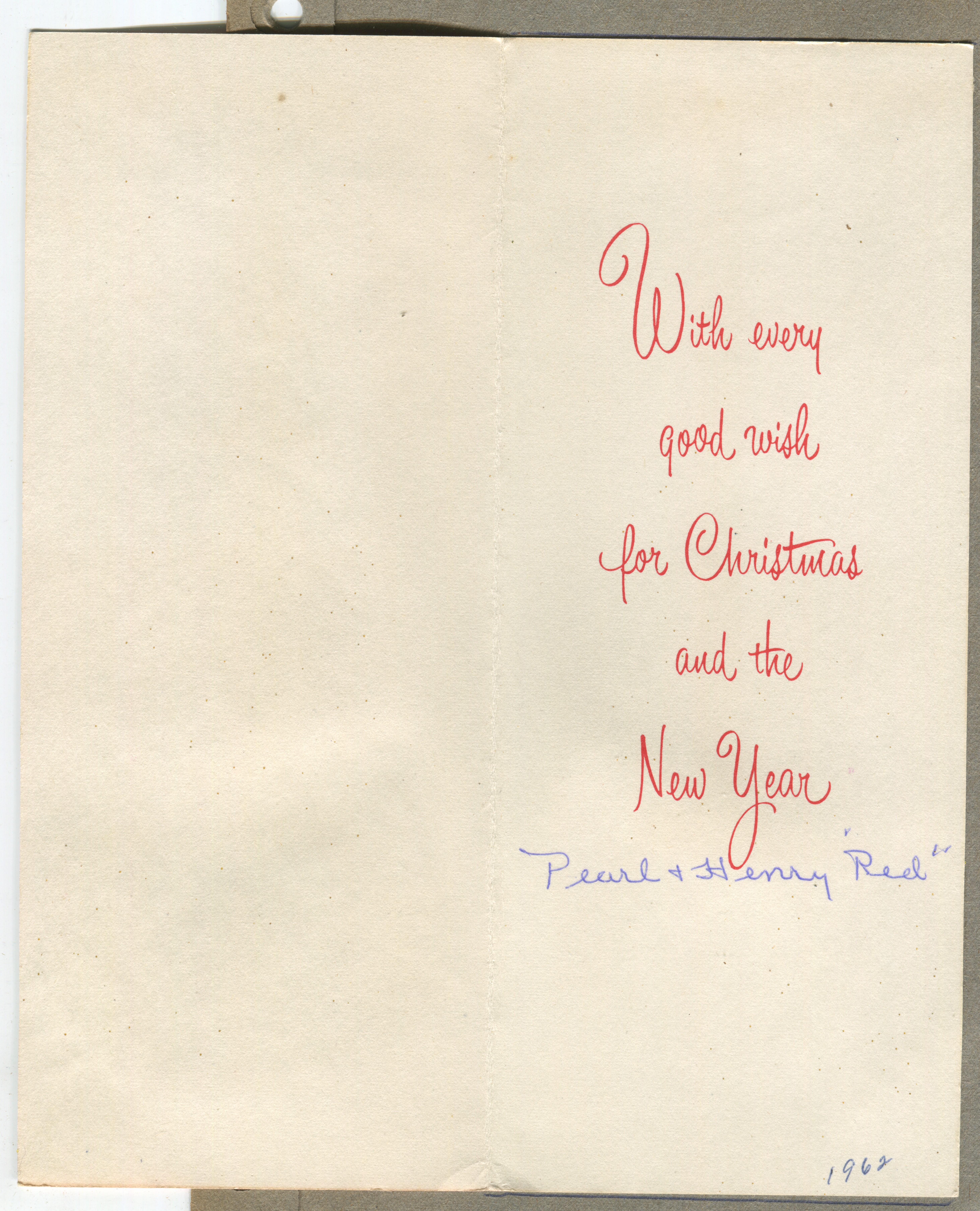 Christmas card to David Kidd c. 1962, signed by Pearl and trumpeter Henry "Red" Allen