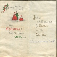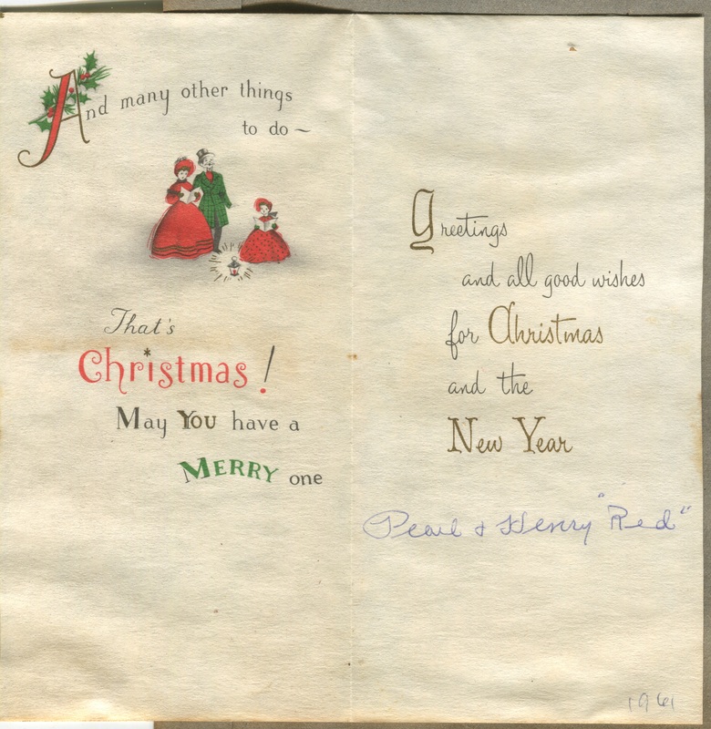 Christmas card to David Kidd c. 1961, signed by Pearl and trumpeter Henry "Red" Allen