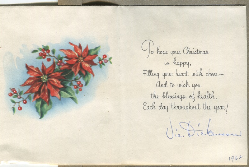 Christmas card to David Kidd c. 1962, signed by trombonist Vic Dickenson
