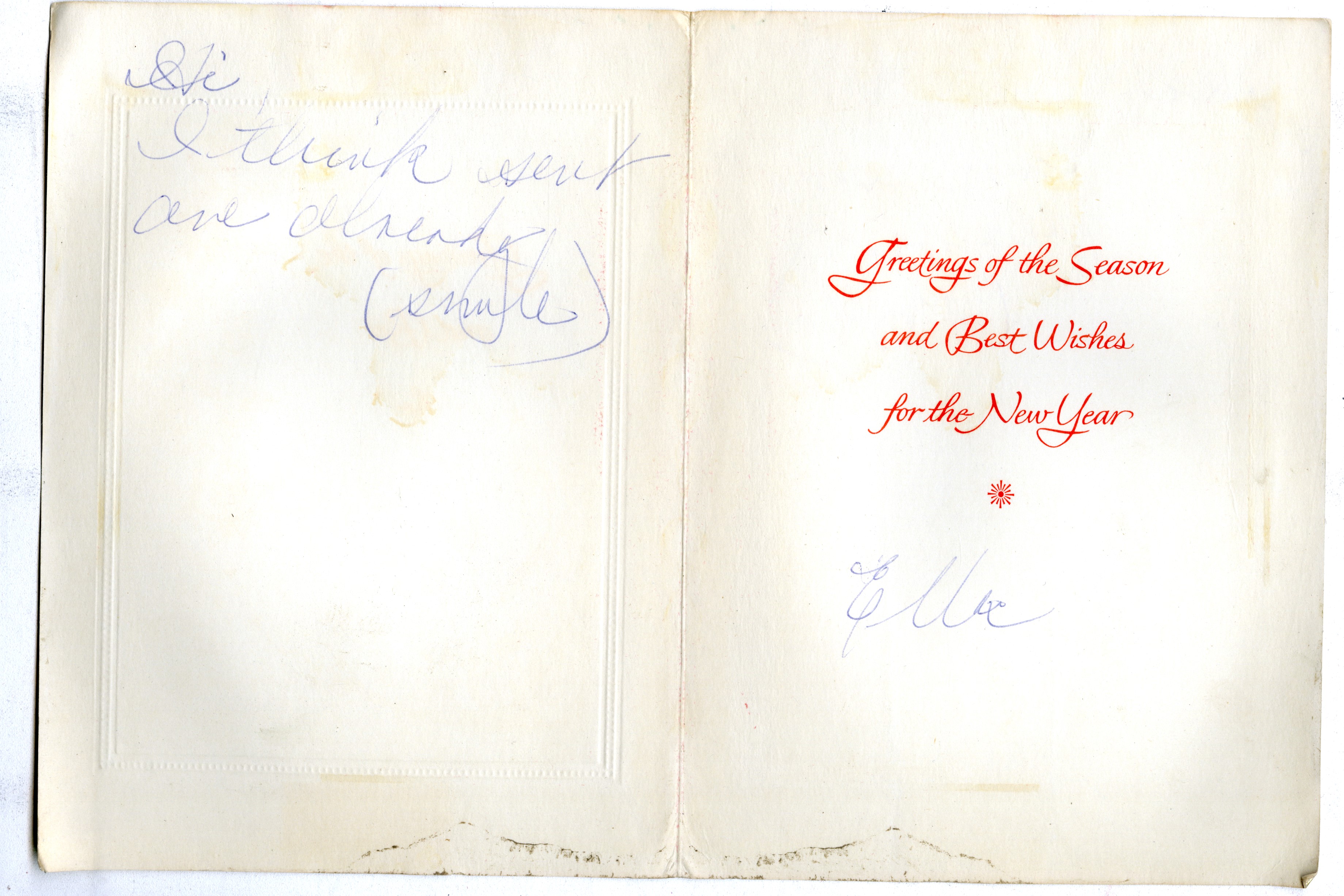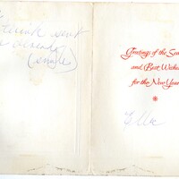 Christmas Card to Roy Eldridge from singer Ella Fitzgerald. Inscription says ?