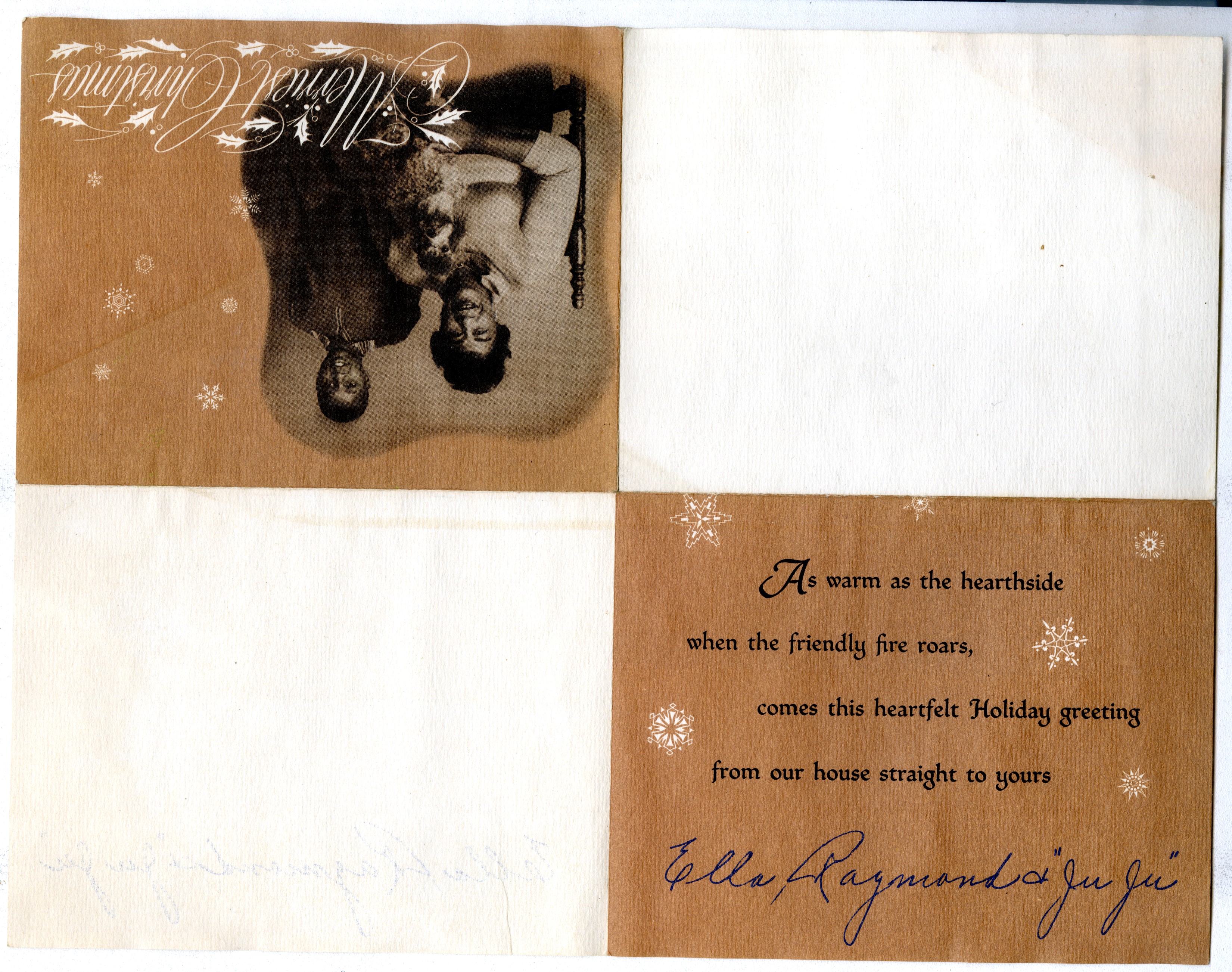 - Christmas Card to Roy Eldridge from singer Ella Fitzgerald, Raymond (her adopted son), and "Ju Ju" (their French Poodle, adopted in the early 1960s).