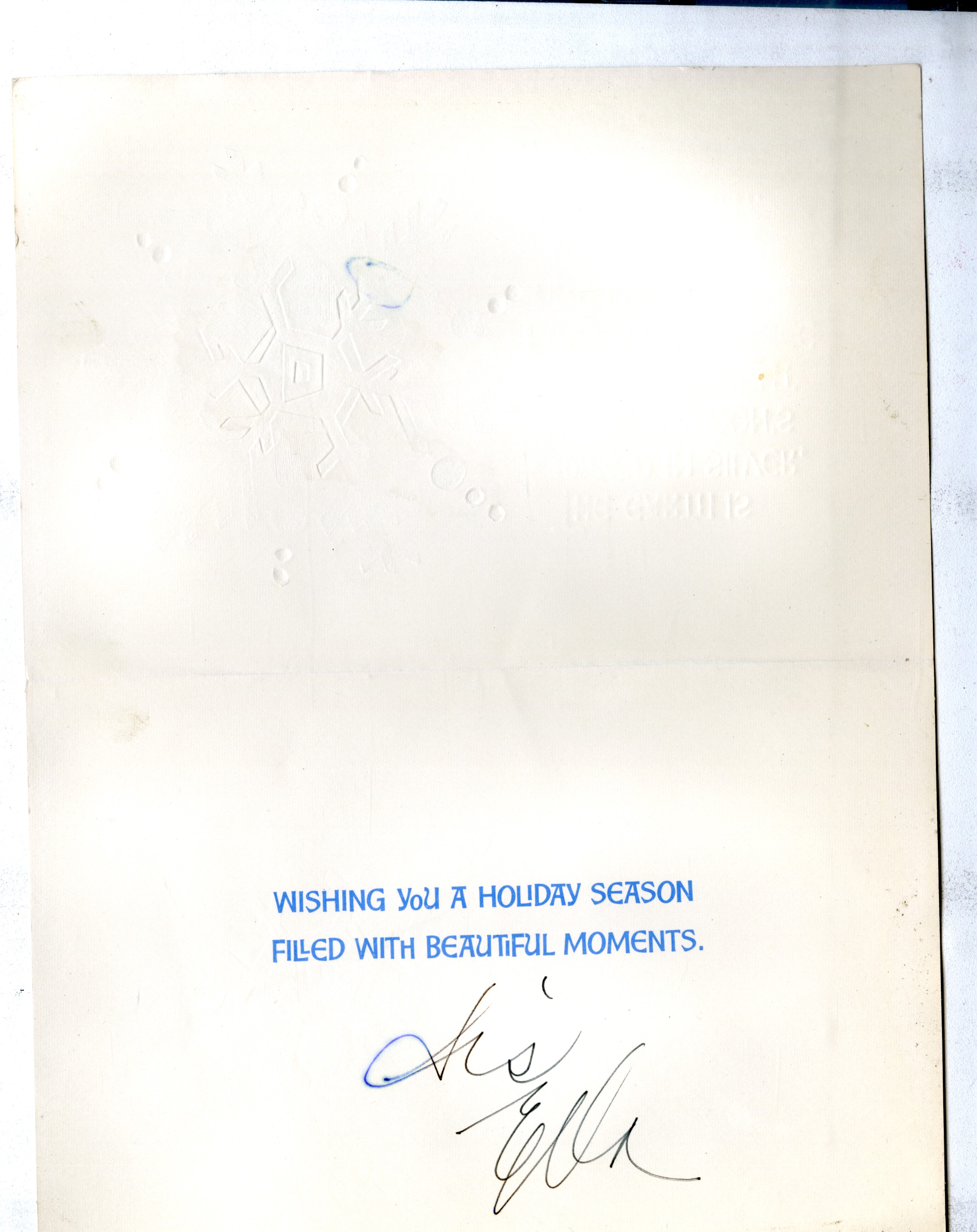Christmas Card to Roy Eldridge from singer Ella Fitzgerald.